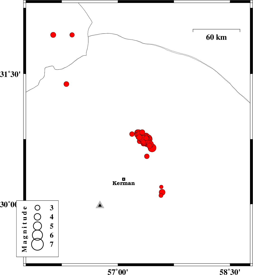 2017/12/01 03:35:00.5 07:05:00.5 30.75257.39916 ML:5.5 Kerman Province, 60 km North-East of Kerman