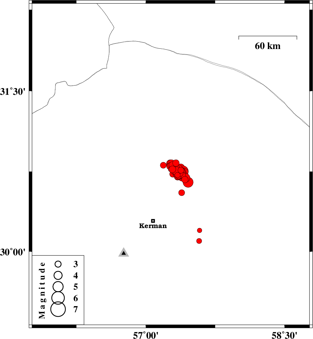| 2017/11/27 | 01:56:22.0 | 05:26:22.0 | 30.1 | 57.576 | 14 | ML2.6 | Kerman Province, 52 km South-East of Kerman |