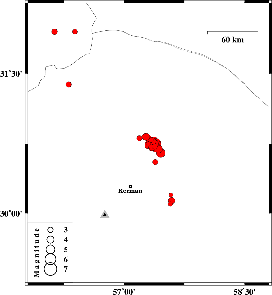 2017/12/02 10:50:40.4 14:20:40.4 30.75157.35615 ML4.1 Kerman Province, 58 km North-East of Kerman