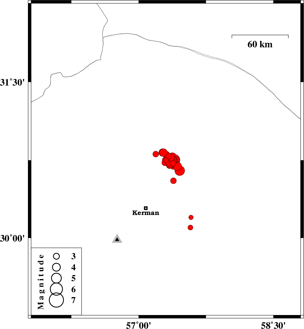 2017/12/02 10:50:40.4 14:20:40.4 30.75157.35615 ML4.1 Kerman Province, 58 km North-East of Kerman