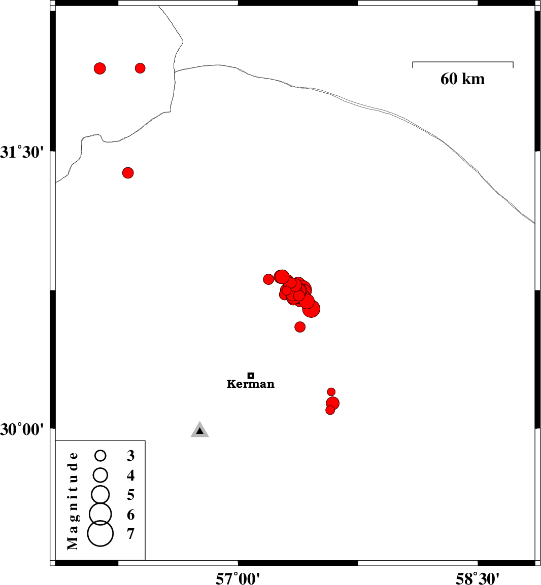 2017/12/02 10:50:40.4 14:20:40.4 30.75157.35615 ML4.1 Kerman Province, 58 km North-East of Kerman