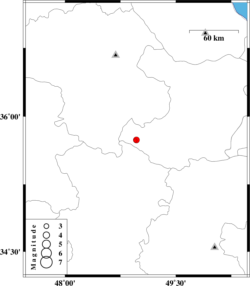 | 2017/12/03 | 23:17:15.2 | 02:47:15.2 | 35.742 | 48.966 | 15 | ML3.8 | Ghazvin Province, 40 km North of Razan |