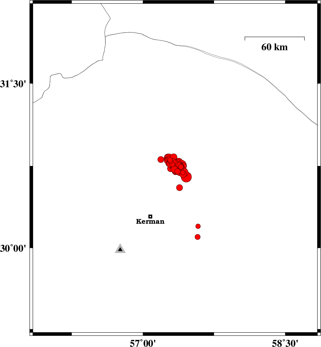 2017/12/02 10:50:40.4 14:20:40.4 30.75157.35615 ML4.1 Kerman Province, 58 km North-East of Kerman