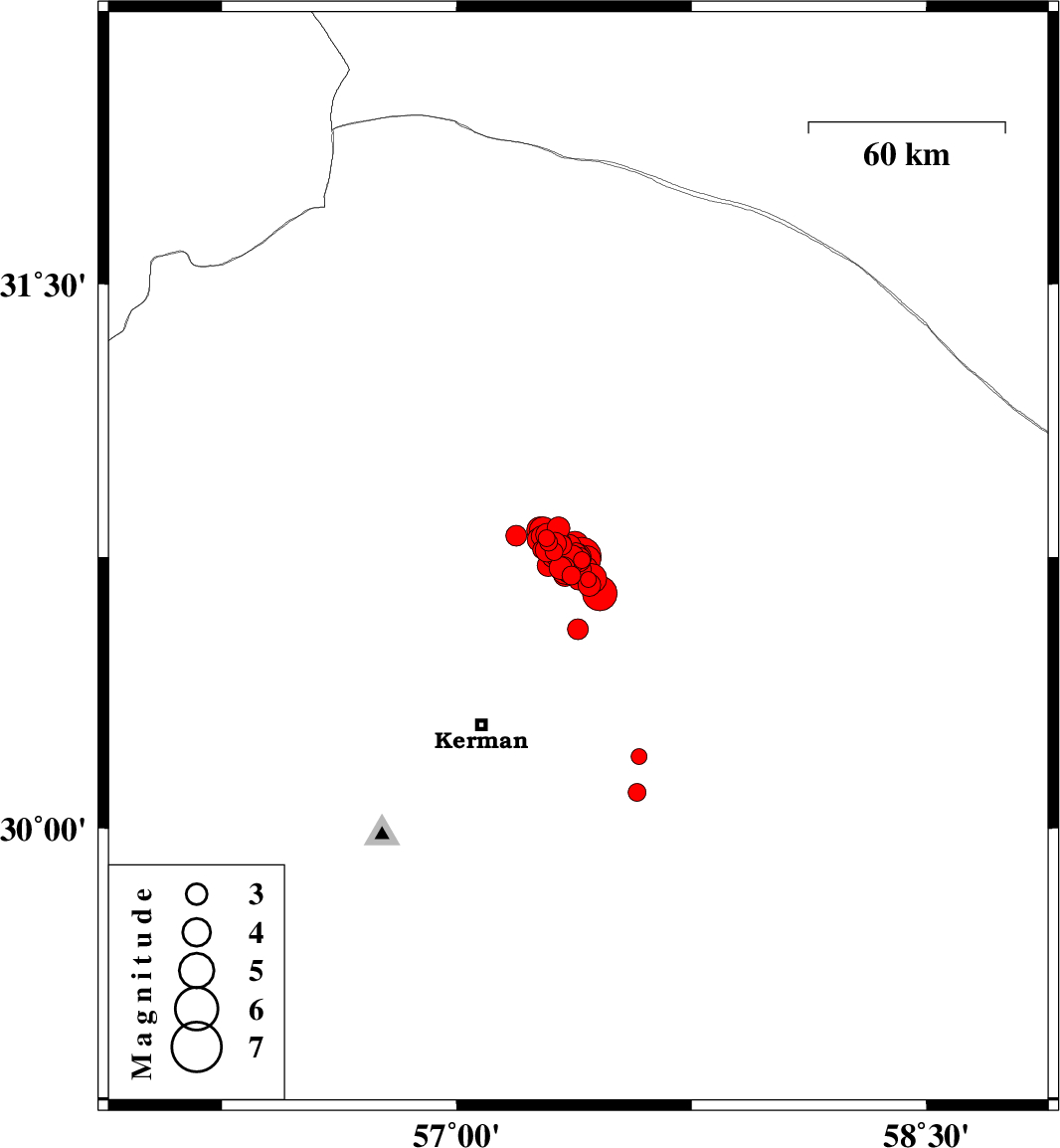 2017/12/04 02:50:05.5 06:20:05.5 30.70857.35118 ML2.7 Kerman Province, 53 km North-East of Kerman
