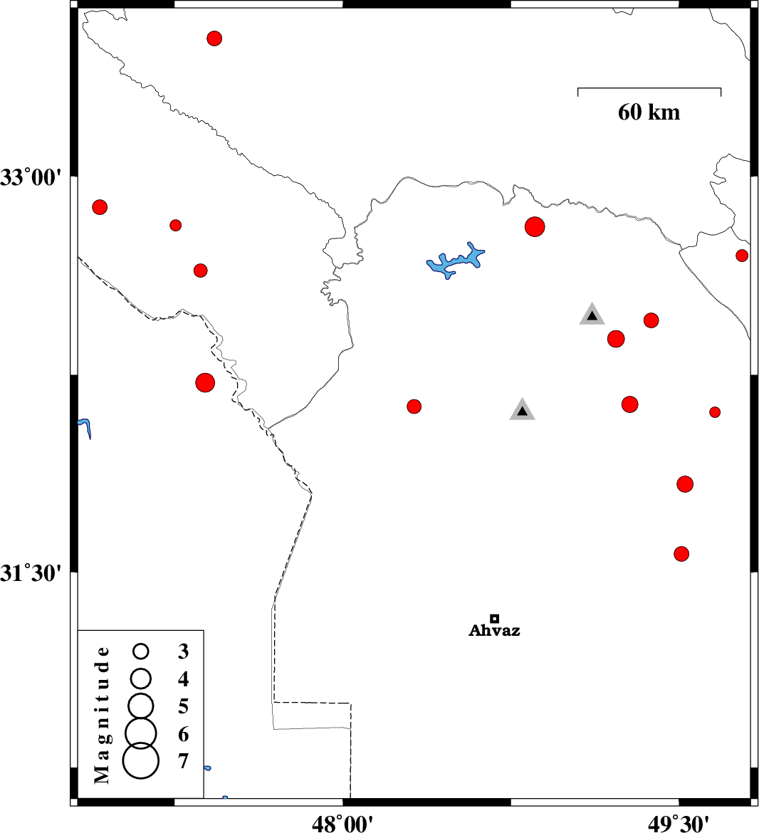 | 2017/12/01 | 10:29:07.7 | 13:59:07.7 | 32.221 | 47.387 | 18 | ML3.8 | Iraq, 54 km South-East of Dehloran | ||