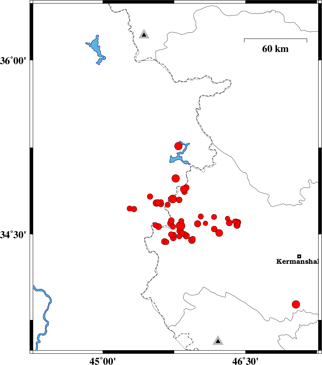| 2017/11/23 | 14:00:14.8 | 17:30:14.8 | 34.468 | 45.741 | 14 | ML3 | Kermanshah Province, 14 km -West of Sar-e pol-e zahab | ||