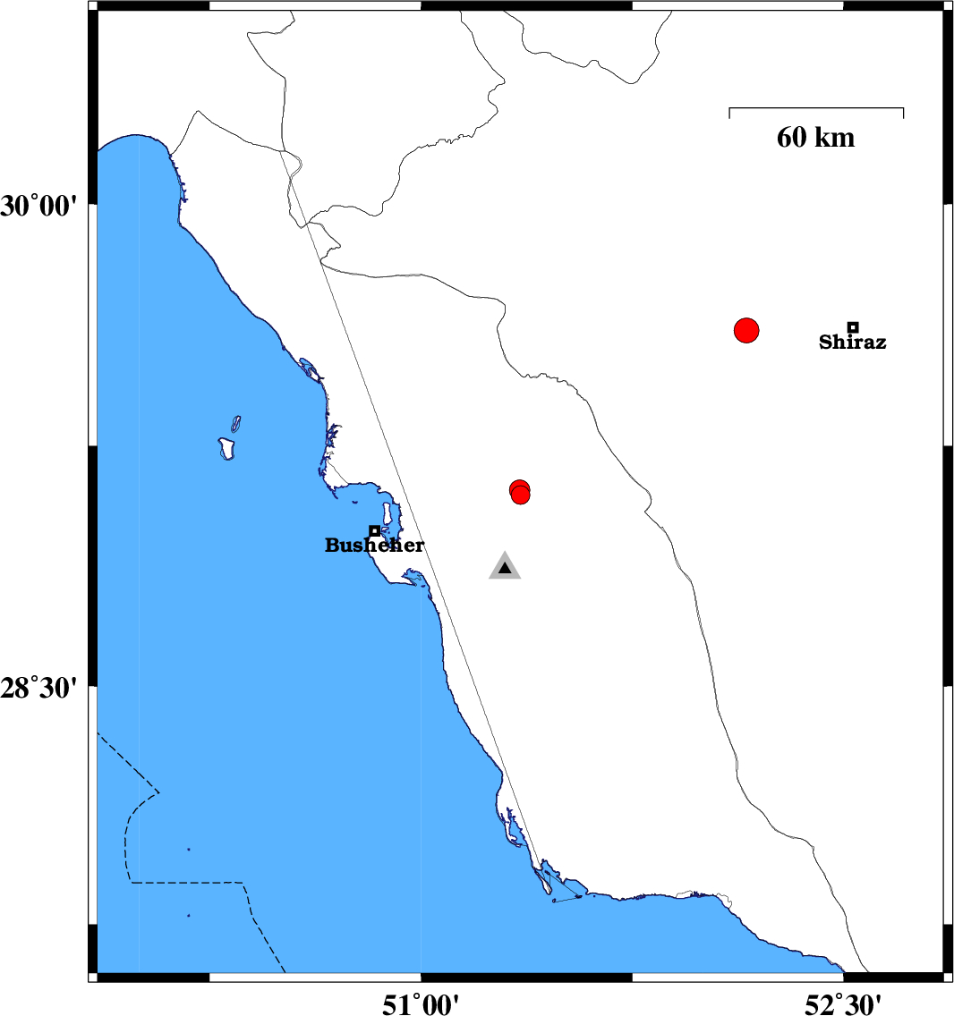 2017/11/29 | 16:52:46.8 | 20:22:46.8 | 29.097 | 51.353 | 14 | ML:3 | Bushehr Province, 23 km South-East of Borazjan | ||