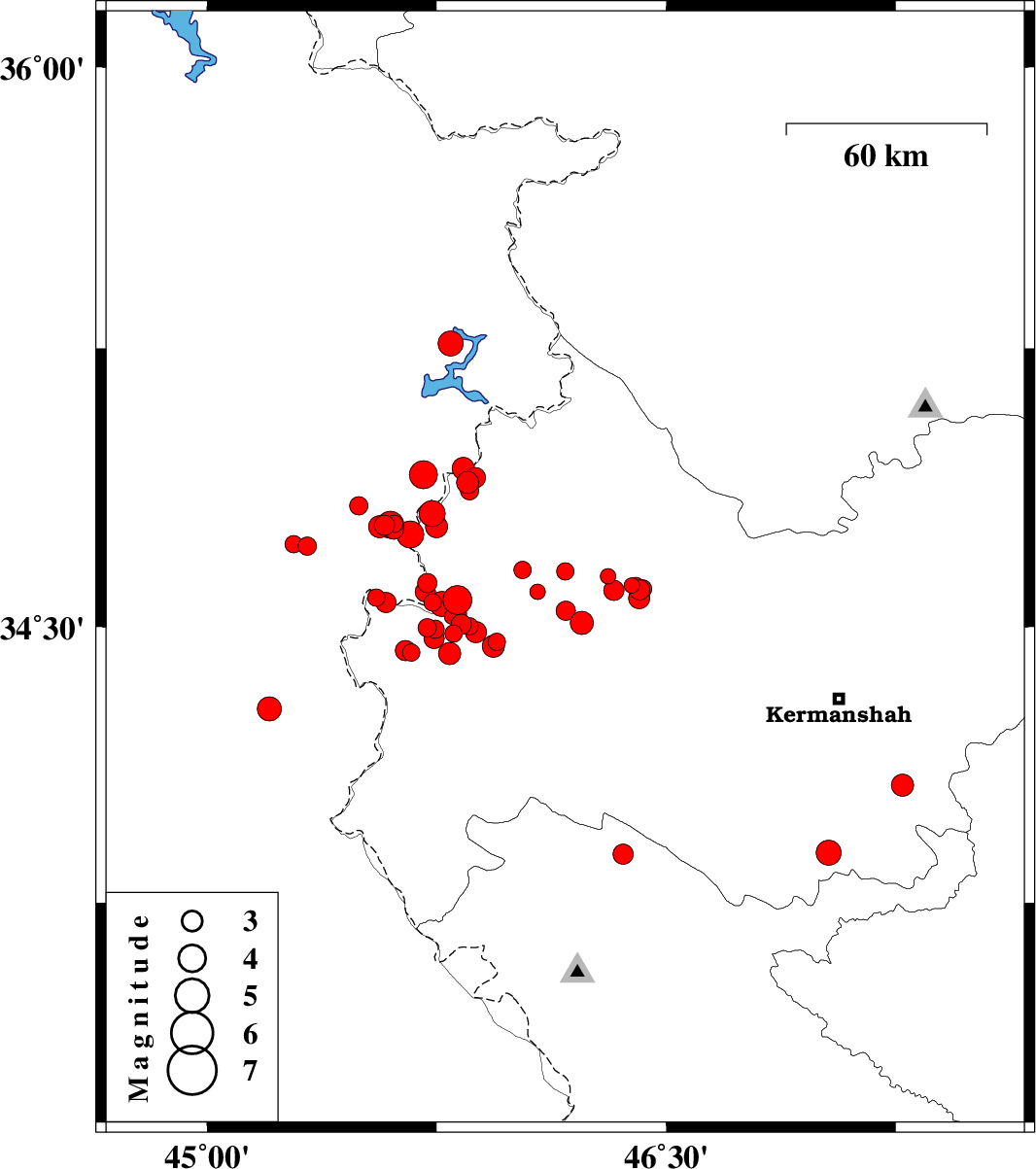 | 2017/11/23 | 14:00:14.8 | 17:30:14.8 | 34.468 | 45.741 | 14 | ML3 | Kermanshah Province, 14 km -West of Sar-e pol-e zahab | ||