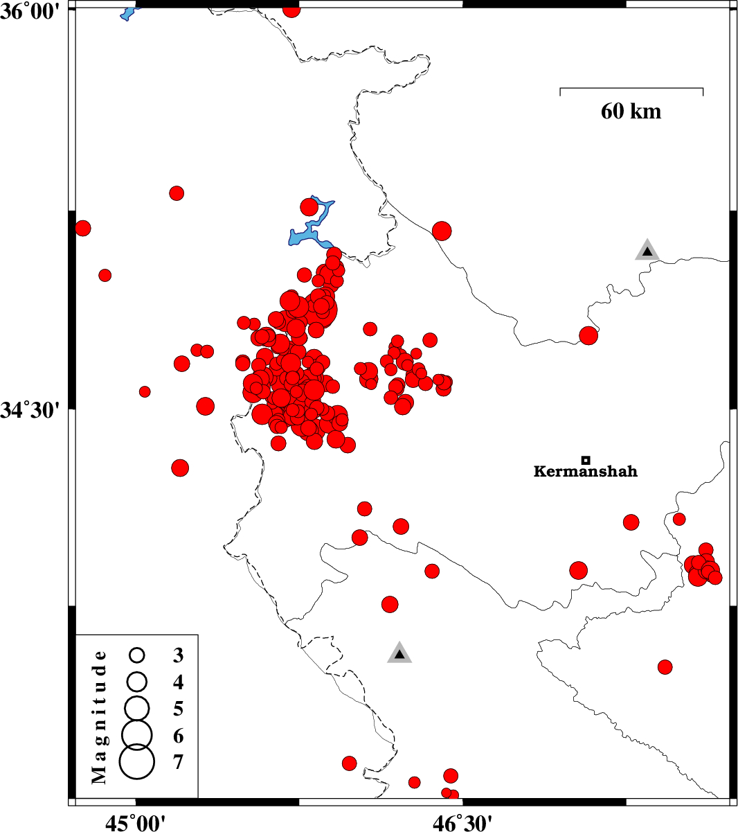 | 2017/11/23 | 14:00:14.8 | 17:30:14.8 | 34.468 | 45.741 | 14 | ML3 | Kermanshah Province, 14 km -West of Sar-e pol-e zahab | ||