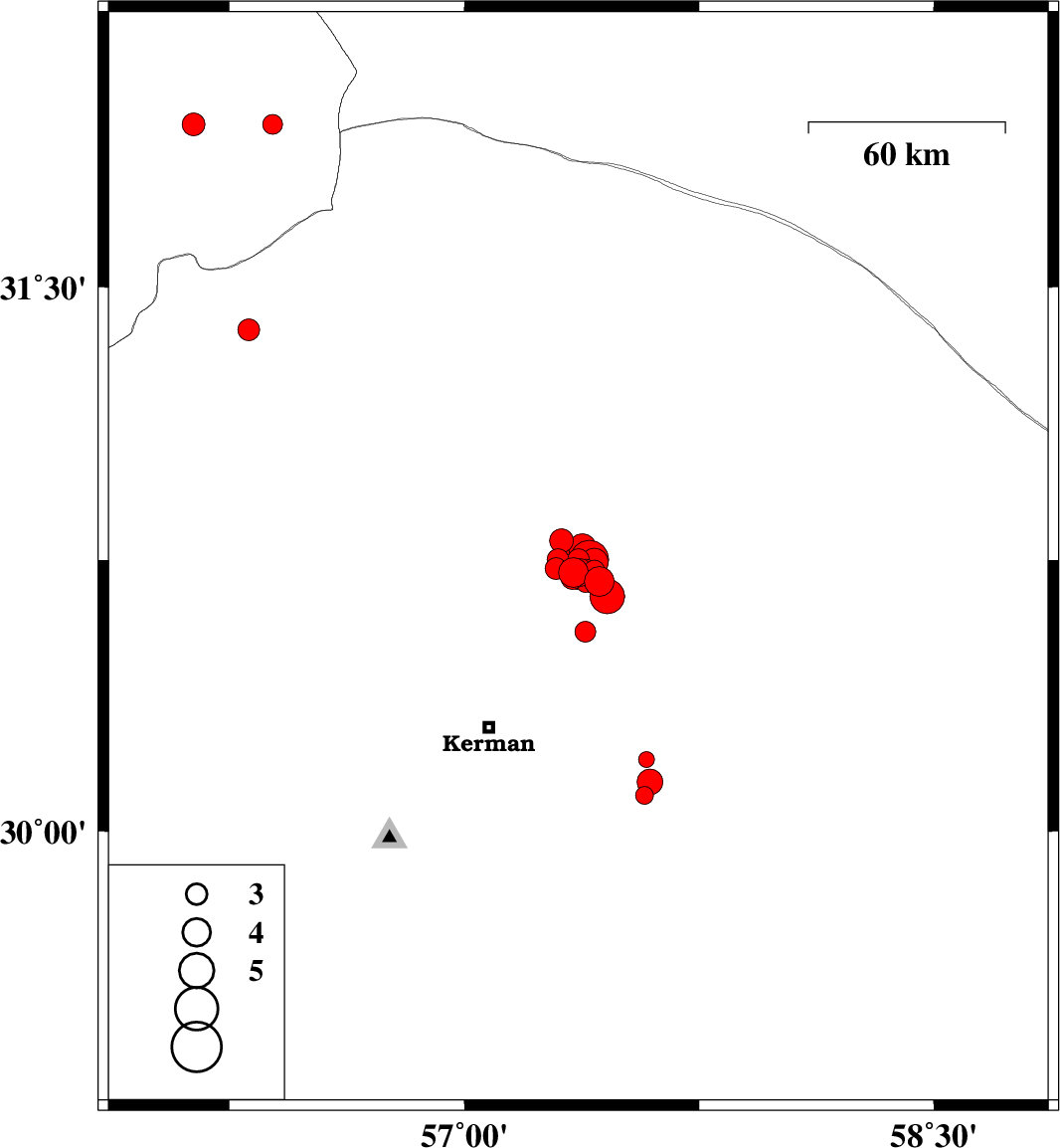 2017/12/01 | 04:49:14.0 | 08:19:14.0 | 30.708 | 57.393 | 14 | ML3 | Kerman Province, 56 km North-East of Kerman | ||