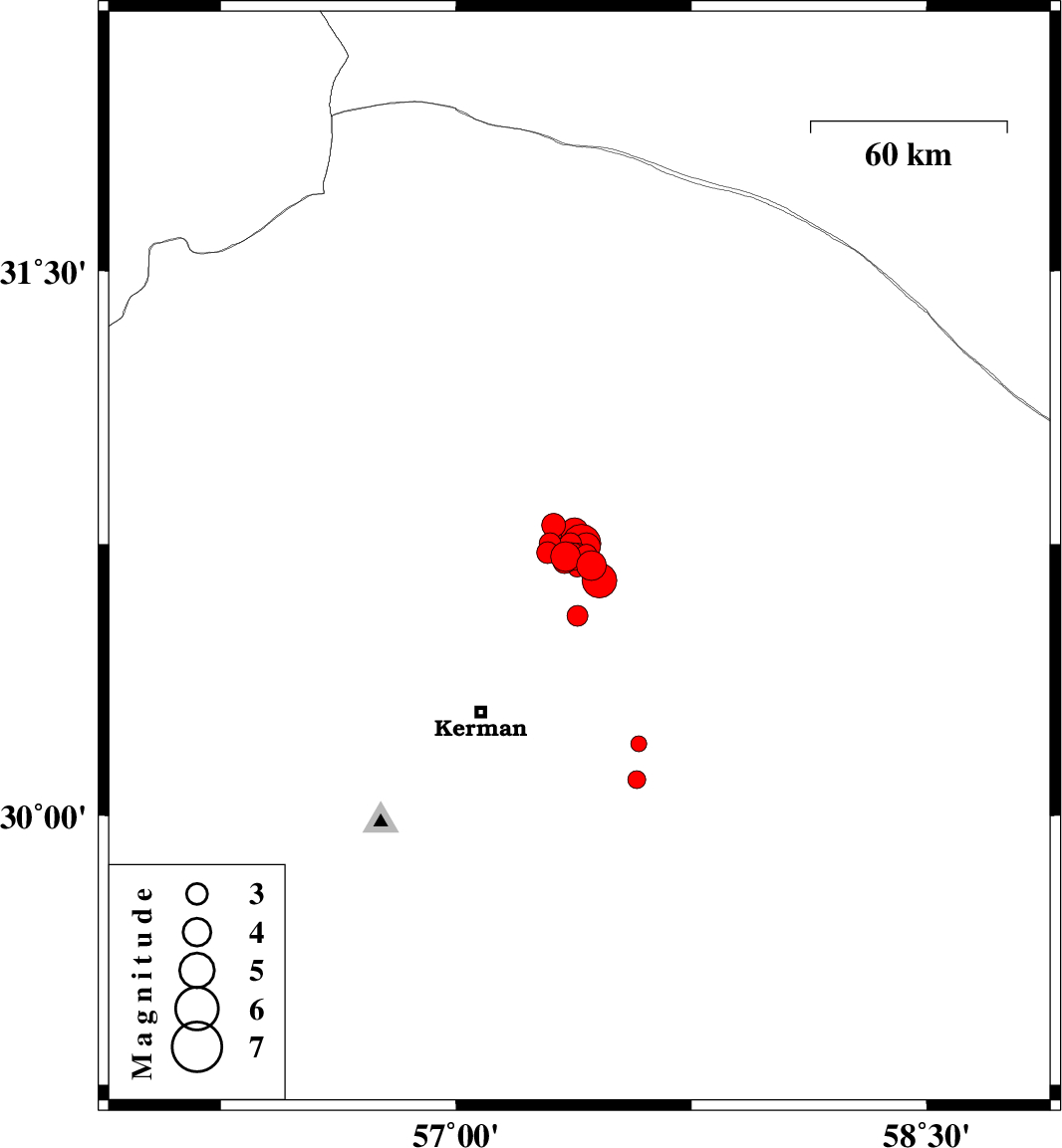 2017/12/01 03:35:00.5 07:05:00.5 30.75257.39916 ML5.5 Kerman Province, 60 km North-East of Kerman