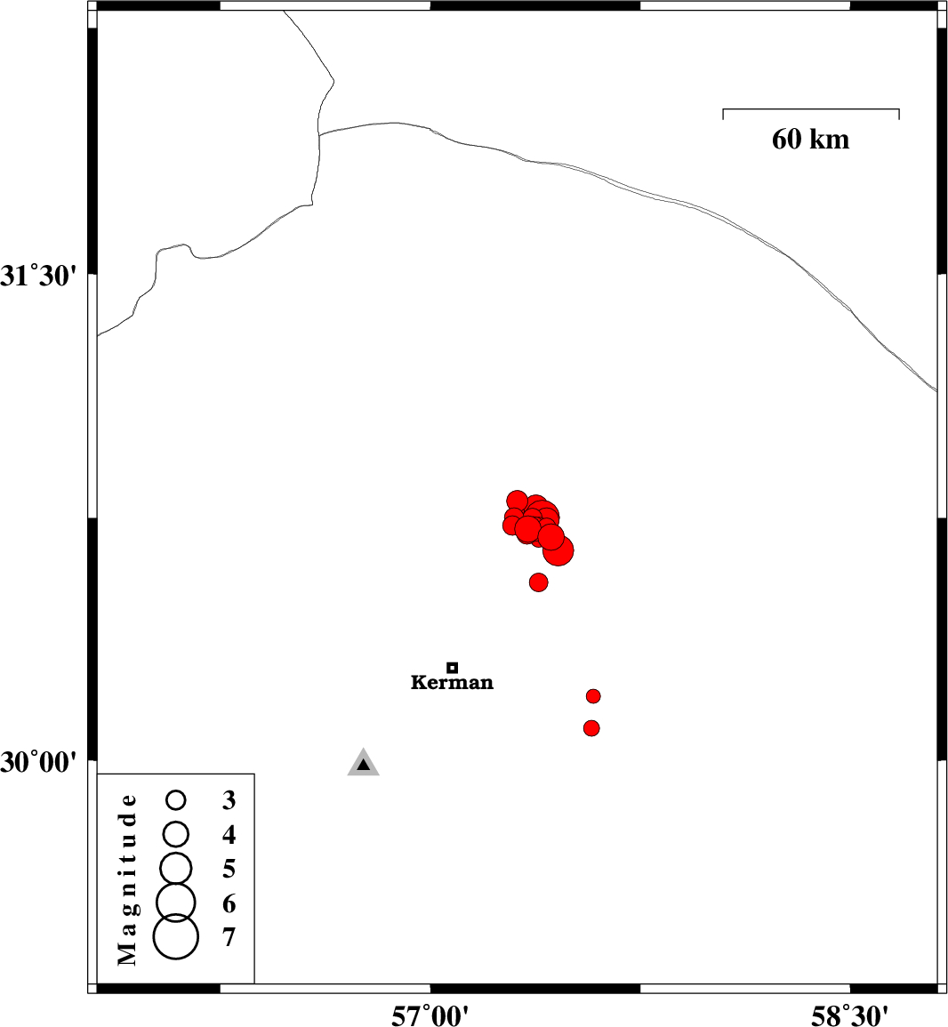 2017/12/01 03:35:00.5 07:05:00.5 30.75257.39916 ML5.5 Kerman Province, 60 km North-East of Kerman