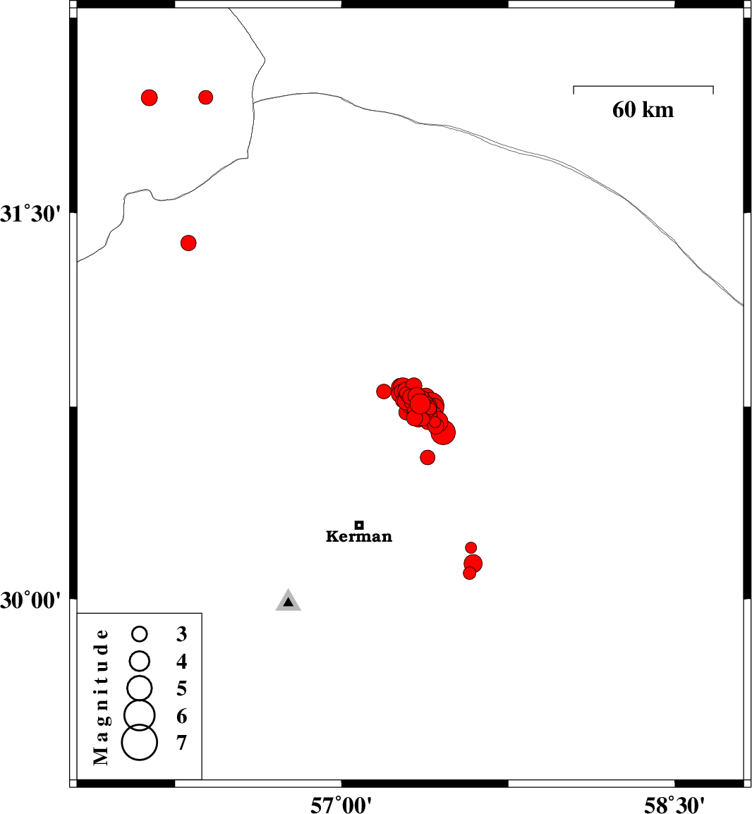 2017/12/02 10:50:40.4 14:20:40.4 30.75157.35615 ML4.1 Kerman Province, 58 km North-East of Kerman