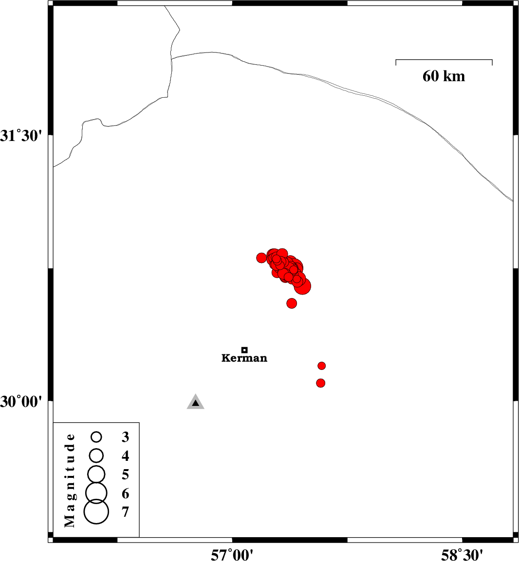 2017/12/02 10:50:40.4 14:20:40.4 30.75157.35615 ML4.1 Kerman Province, 58 km North-East of Kerman