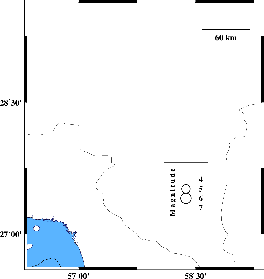 | 2017/12/04 | 18:46:17.8 | 22:16:17.8 | 28.12 | 57.84 | 14 | ML2.9 | Kerman Province, 24 km North-East of Kahnuj | ||