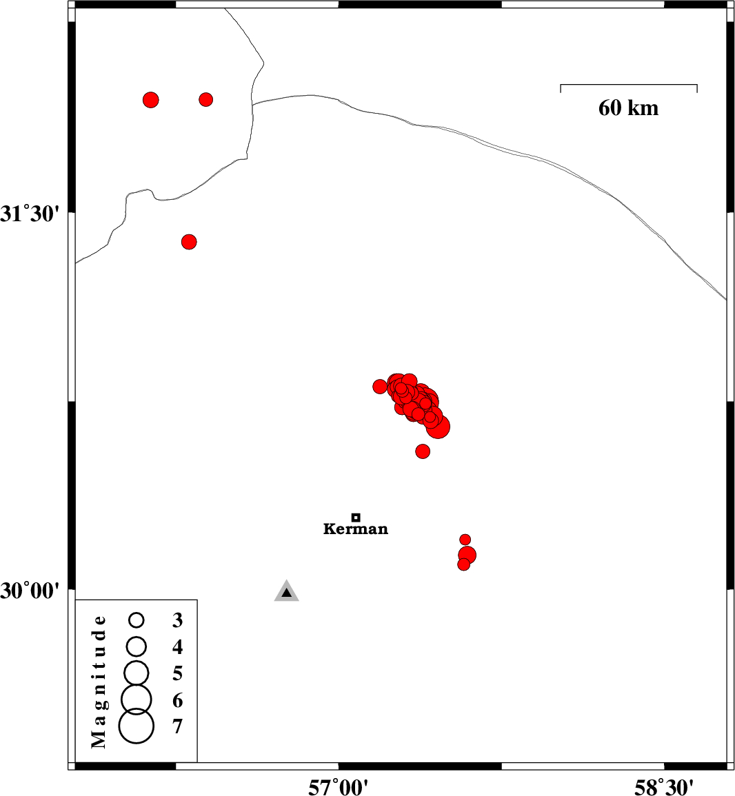 2017/12/02 10:50:40.4 14:20:40.4 30.75157.35615 ML4.1 Kerman Province, 58 km North-East of Kerman