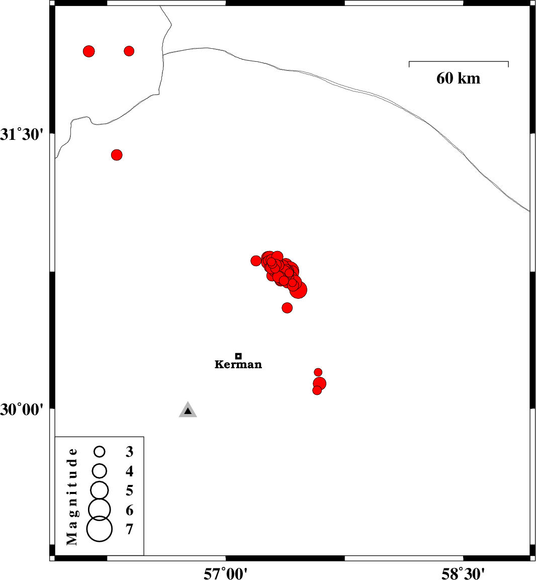 | 2017/12/02 | 10:50:40.4 | 14:20:40.4 | 30.751 | 57.356 | 15 | ML4.1 | Kerman Province, 58 km North-East of Kerman | ||