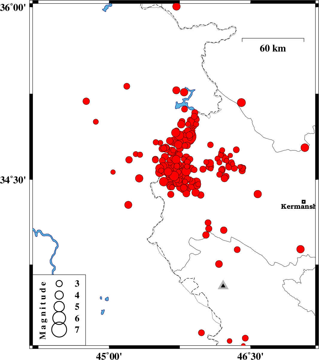 | 2017/11/23 | 14:00:14.8 | 17:30:14.8 | 34.468 | 45.741 | 14 | ML3 | Kermanshah Province, 14 km -West of Sar-e pol-e zahab | ||