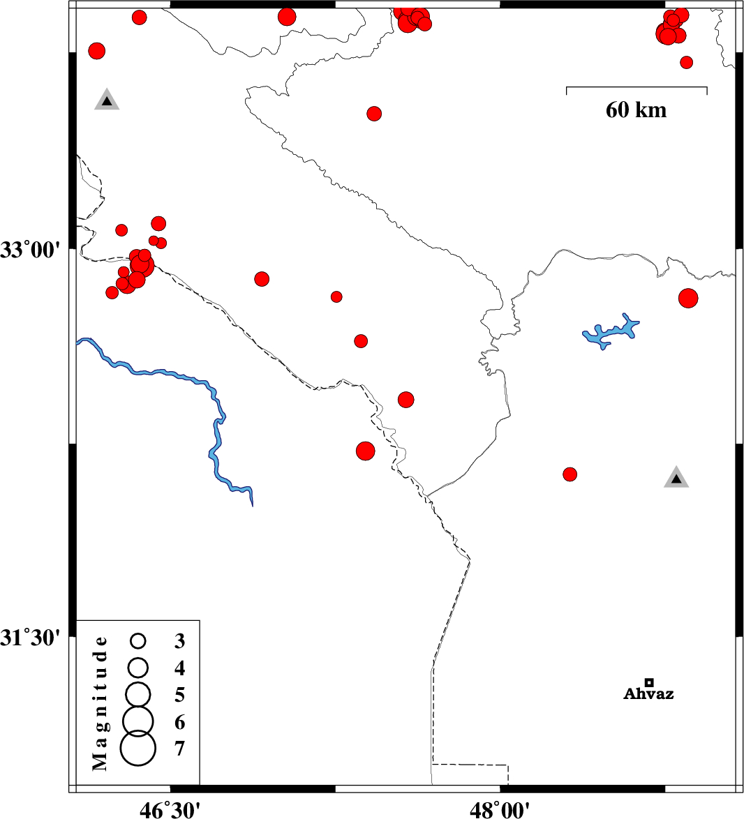 | 2017/11/23 | 08:09:48.8 | 11:39:48.8 | 32.975 | 46.382 | 9 | ML2.5 | Ilam Province, 26 km South-East of Mehran | ||