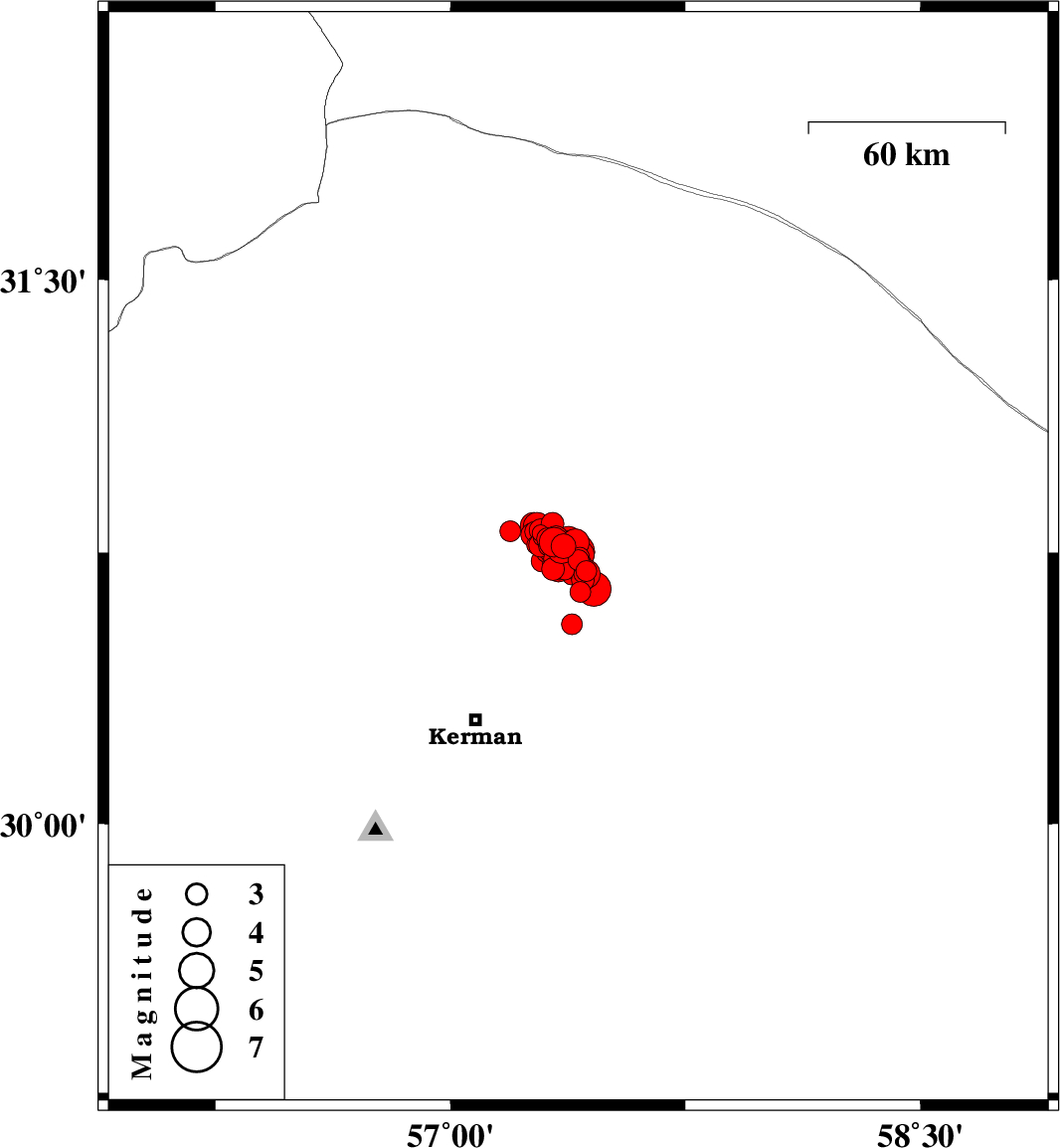 | 2017/12/06 | 01:29:51.4 | 04:59:51.4 | 30.777 | 57.399 | 14 | ML4 | Kerman Province, 62 km North-East of Kerman | ||