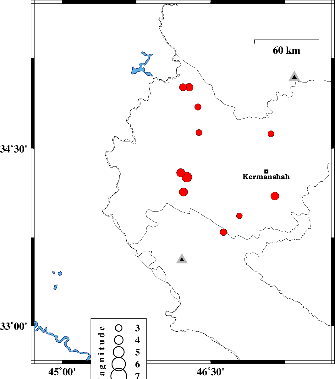 | 2017/12/08 | 13:15:09.2 | 16:45:09.2 | 34.205 | 46.219 | 15 | ML2.7 | Kermanshah Province, 29 km -East of Gilan-E-Gharb | ||