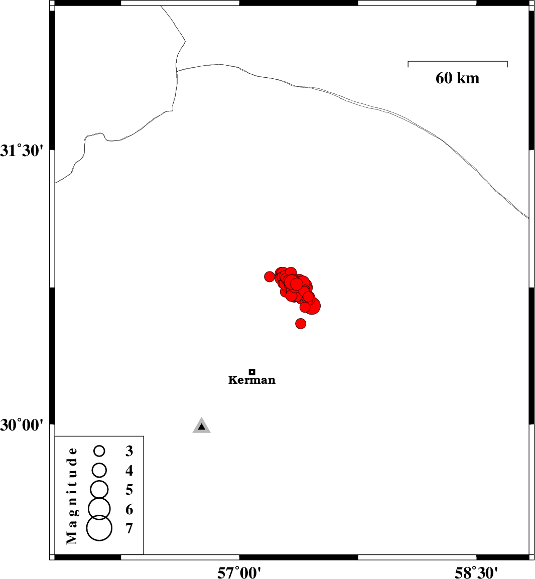 | 2017/12/06 | 01:29:51.4 | 04:59:51.4 | 30.777 | 57.399 | 14 | ML4 | Kerman Province, 62 km North-East of Kerman | ||