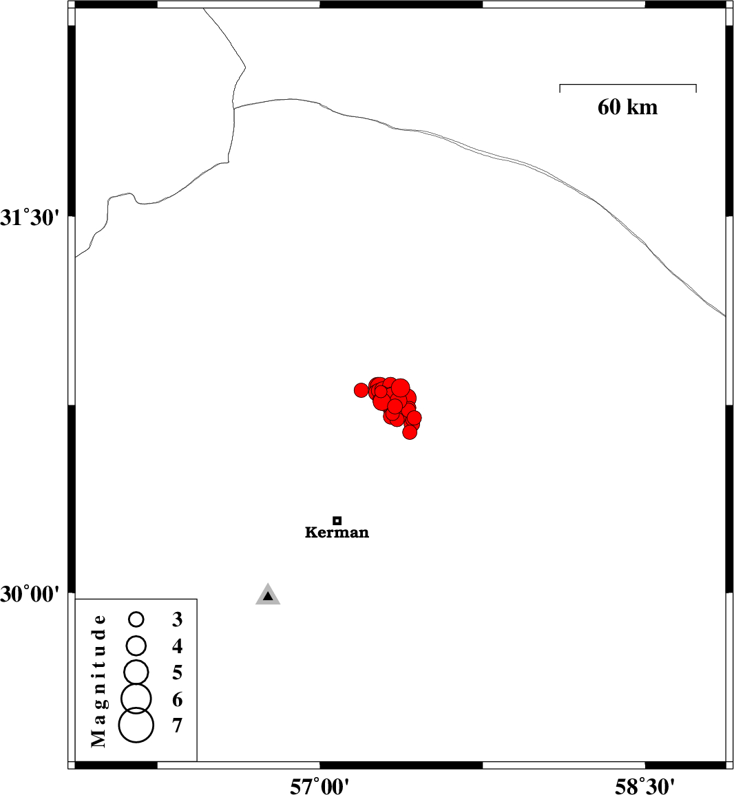 2017/12/02 10:50:40.4 14:20:40.4 30.75157.35615 ML4.1 Kerman Province, 58 km North-East of Kerman