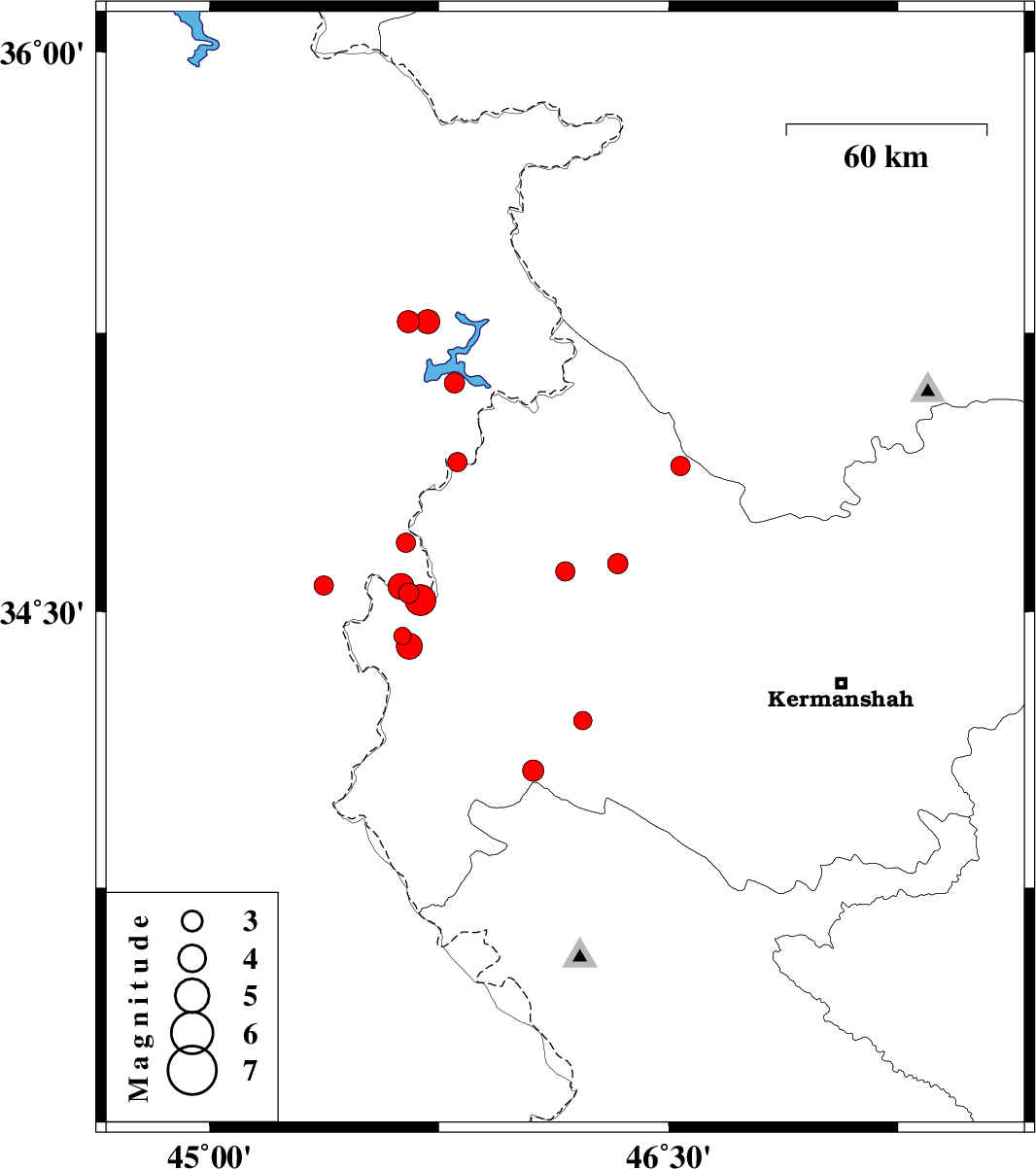 | 2017/12/09 | 06:40:31.3 | 10:10:31.3 | 34.608 | 46.162 | 6 | ML2.8 | Kermanshah Province, 30 km North-East of Sar-e pol-e zahab | ||