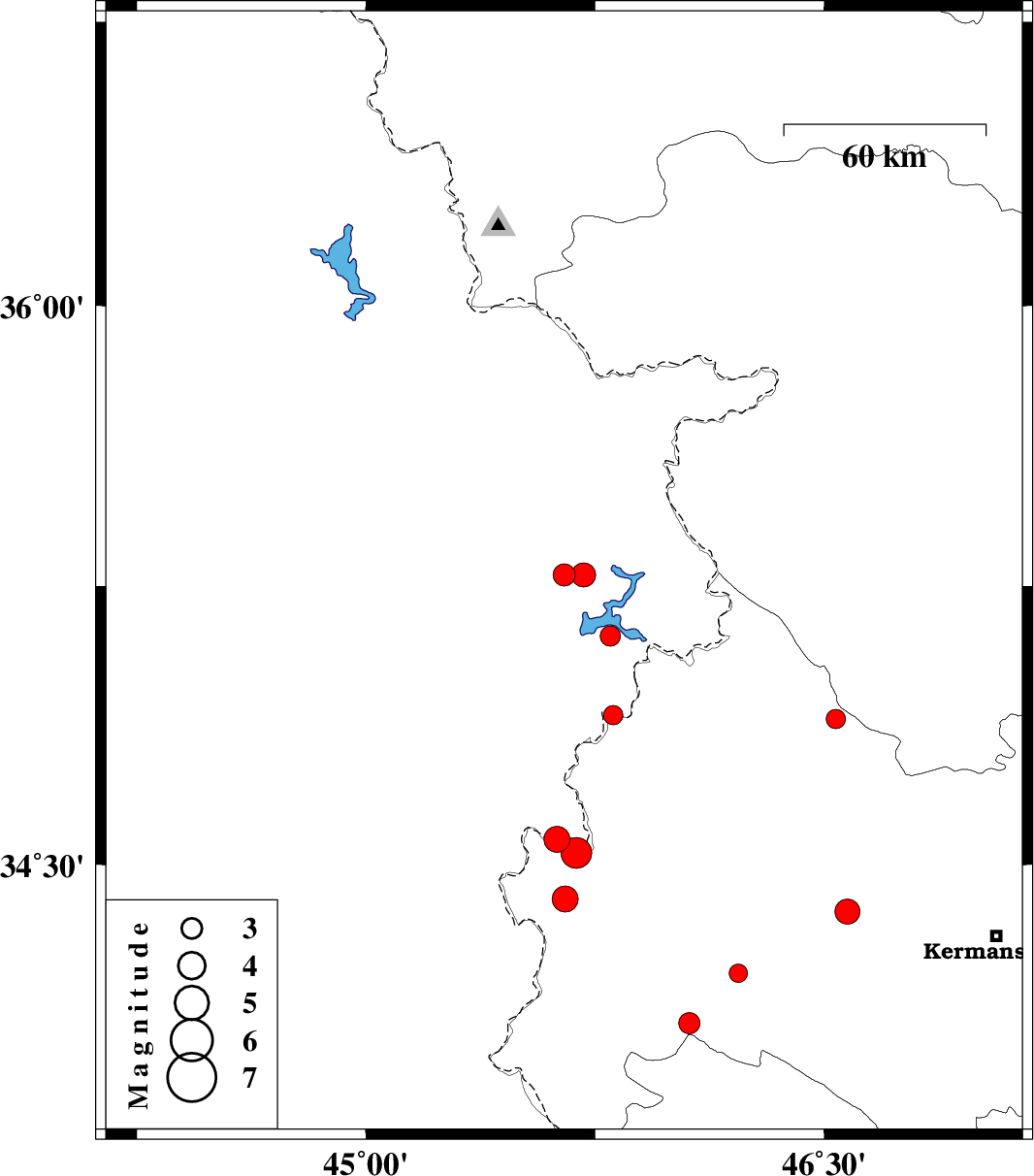 | 2017/12/08 | 06:22:50.4 | 09:52:50.4 | 34.903 | 45.81 | 15 | ML2.8 | Kermanshah Province, 16 km North of Tazehabad | ||