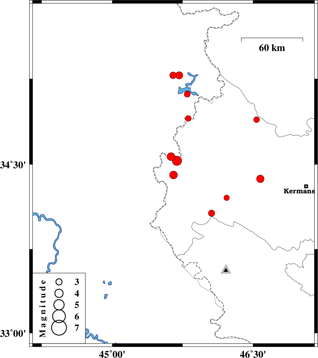 | 2017/12/08 | 13:15:09.2 | 16:45:09.2 | 34.205 | 46.219 | 15 | ML2.7 | Kermanshah Province, 29 km -East of Gilan-E-Gharb | ||