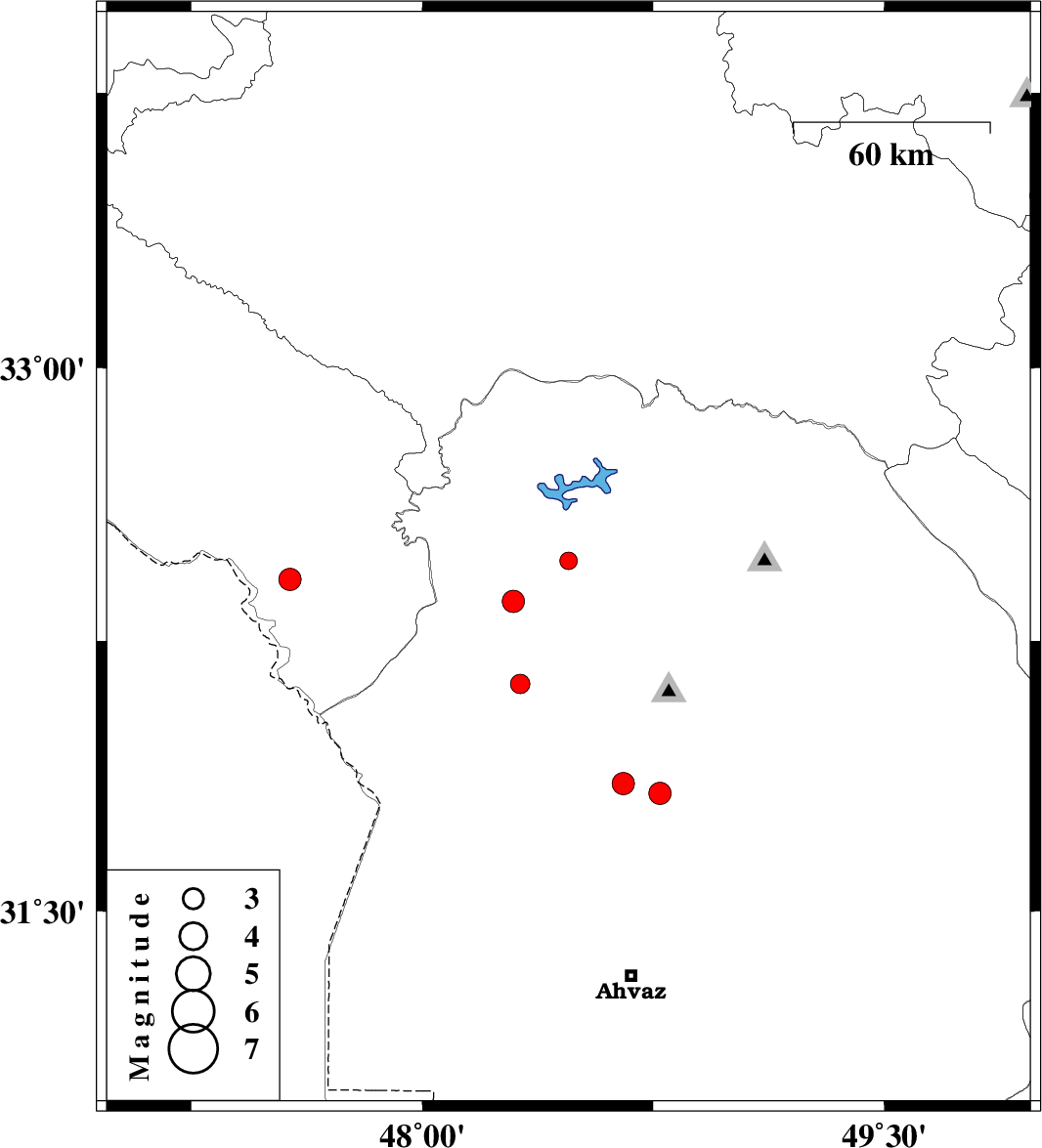 | 2017/12/09 | 03:30:05.4 | 07:00:05.4 | 31.854 | 48.653 | 14 | ML3.2 | Khoozestan Province, 28 km South-West of Shushtar | ||