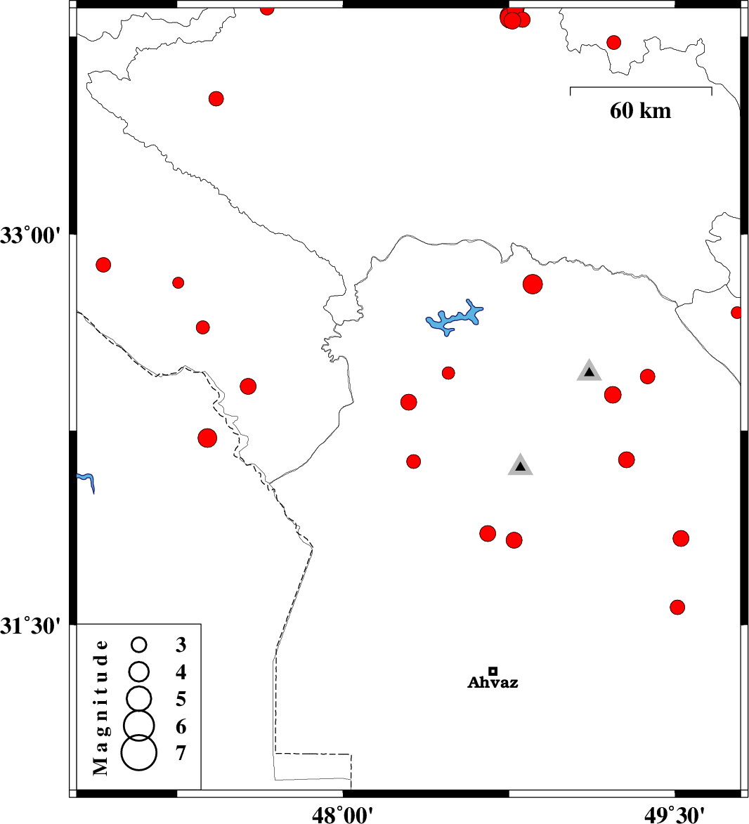 | 2017/12/01 | 10:29:07.7 | 13:59:07.7 | 32.221 | 47.387 | 18 | ML3.8 | Iraq, 54 km South-East of Dehloran | ||