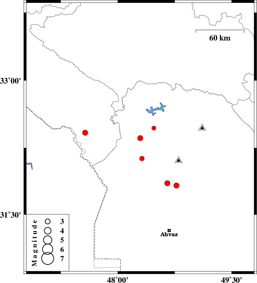 | 2017/12/09 | 03:30:05.4 | 07:00:05.4 | 31.854 | 48.653 | 14 | ML3.2 | Khoozestan Province, 28 km South-West of Shushtar | ||