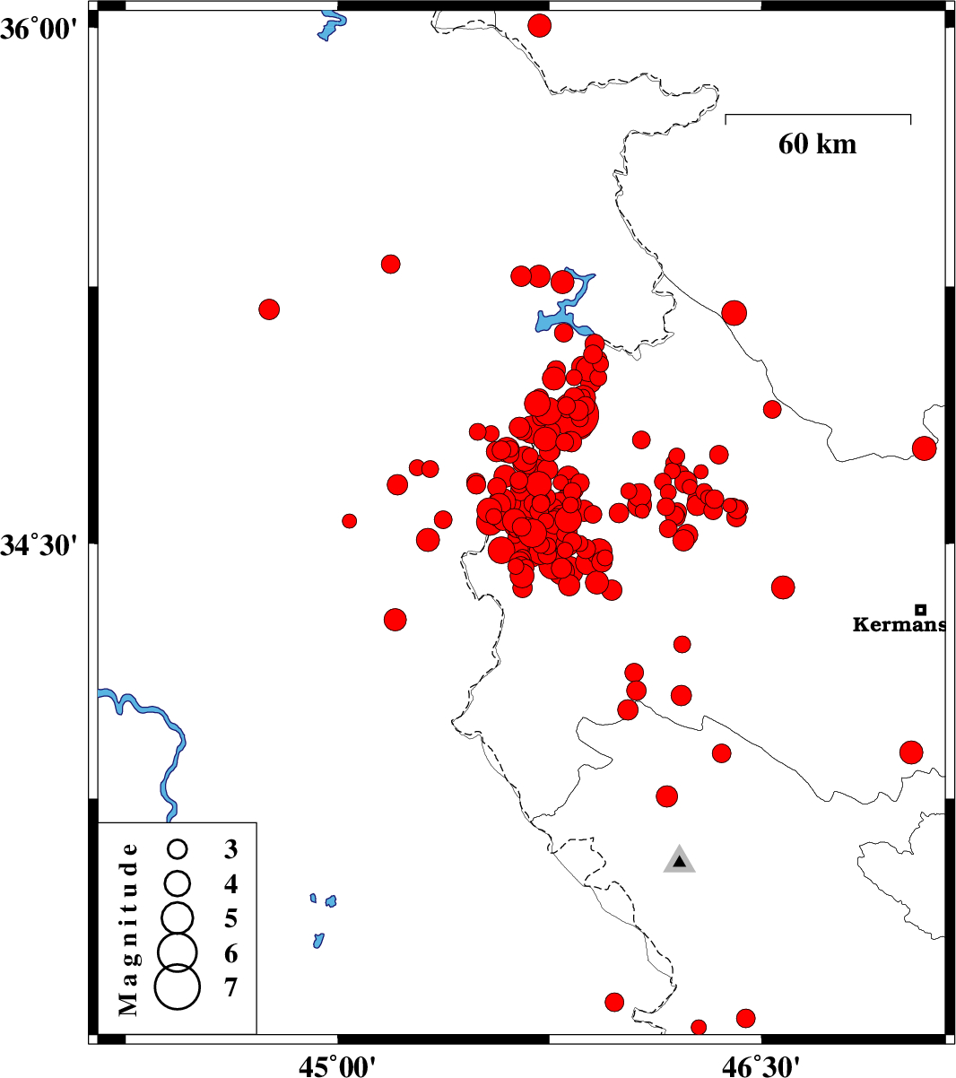 | 2017/12/09 | 06:40:31.3 | 10:10:31.3 | 34.608 | 46.162 | 6 | ML2.8 | Kermanshah Province, 30 km North-East of Sar-e pol-e zahab | ||