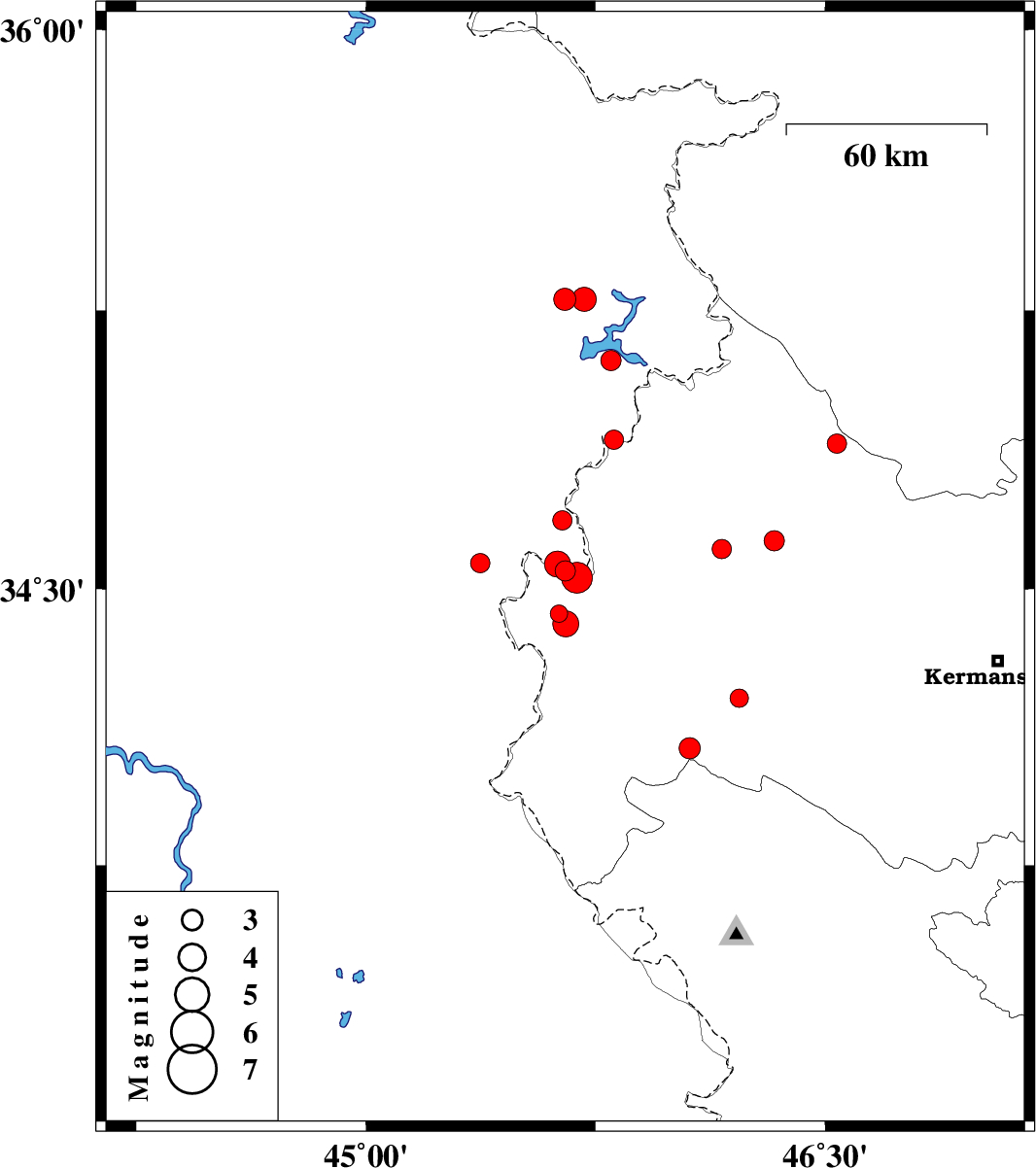 | 2017/12/09 | 06:40:31.3 | 10:10:31.3 | 34.608 | 46.162 | 6 | ML2.8 | Kermanshah Province, 30 km North-East of Sar-e pol-e zahab | ||