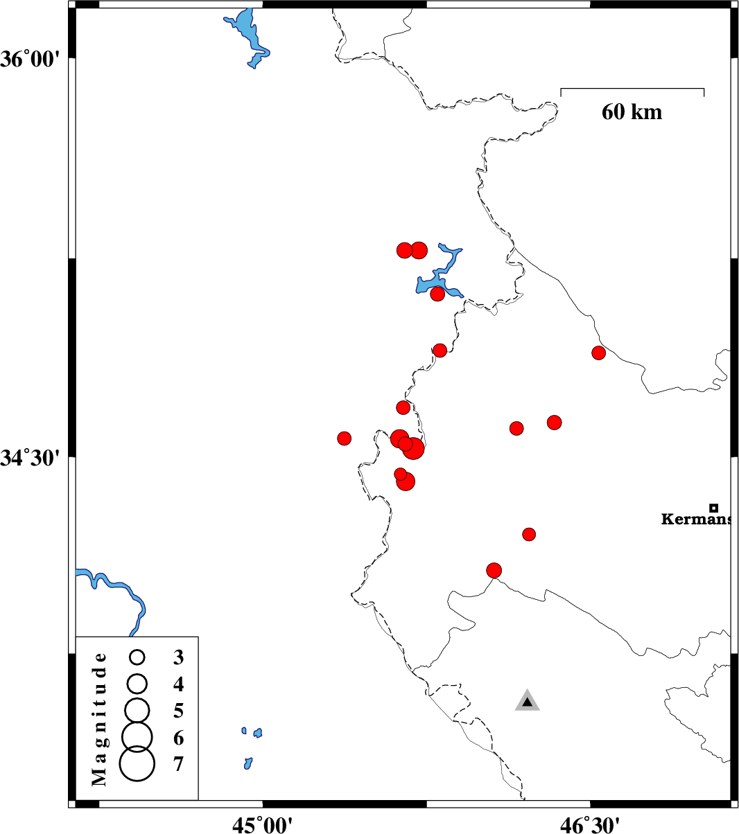 | 2017/12/09 | 06:40:31.3 | 10:10:31.3 | 34.608 | 46.162 | 6 | ML2.8 | Kermanshah Province, 30 km North-East of Sar-e pol-e zahab | ||