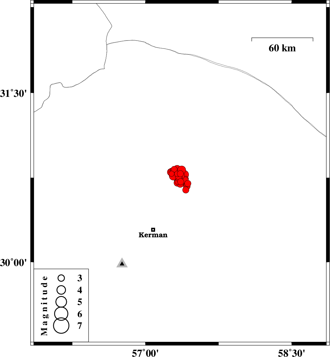2017/12/04 02:50:05.5 06:20:05.5 30.70857.35118 ML2.7 Kerman Province, 53 km North-East of Kerman