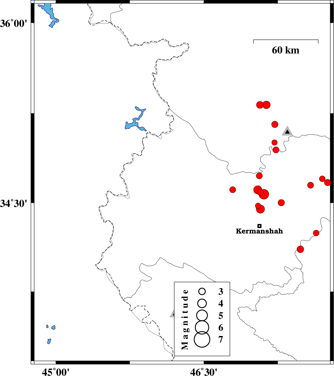 | 2017/12/09 | 06:40:31.3 | 10:10:31.3 | 34.608 | 46.162 | 6 | ML2.8 | Kermanshah Province, 30 km North-East of Sar-e pol-e zahab | ||