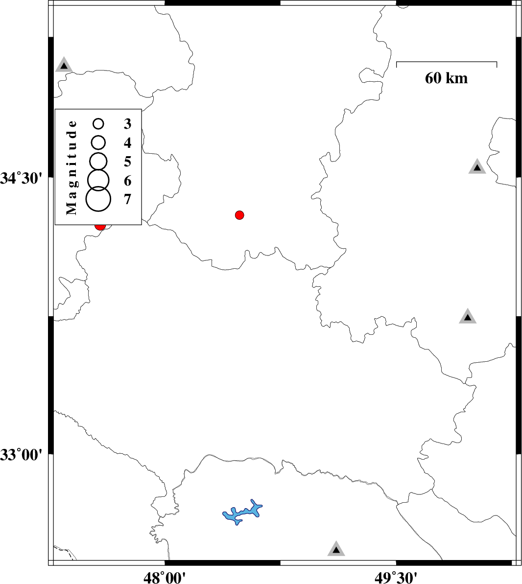 2017/12/12 | 01:57:36.7 | 05:27:36.7 | 33.918 | 48.778 | 14 | ML:2.5 | Lorestan Province, 3 km of Borujerd | ||