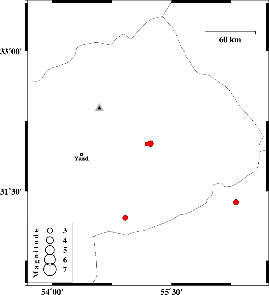 | 2017/11/20 | 13:11:09.9 | 16:41:09.9 | 31.383 | 56.311 | 18 | ML3.1 | Kerman Province, 49 km North-West of Ravar |