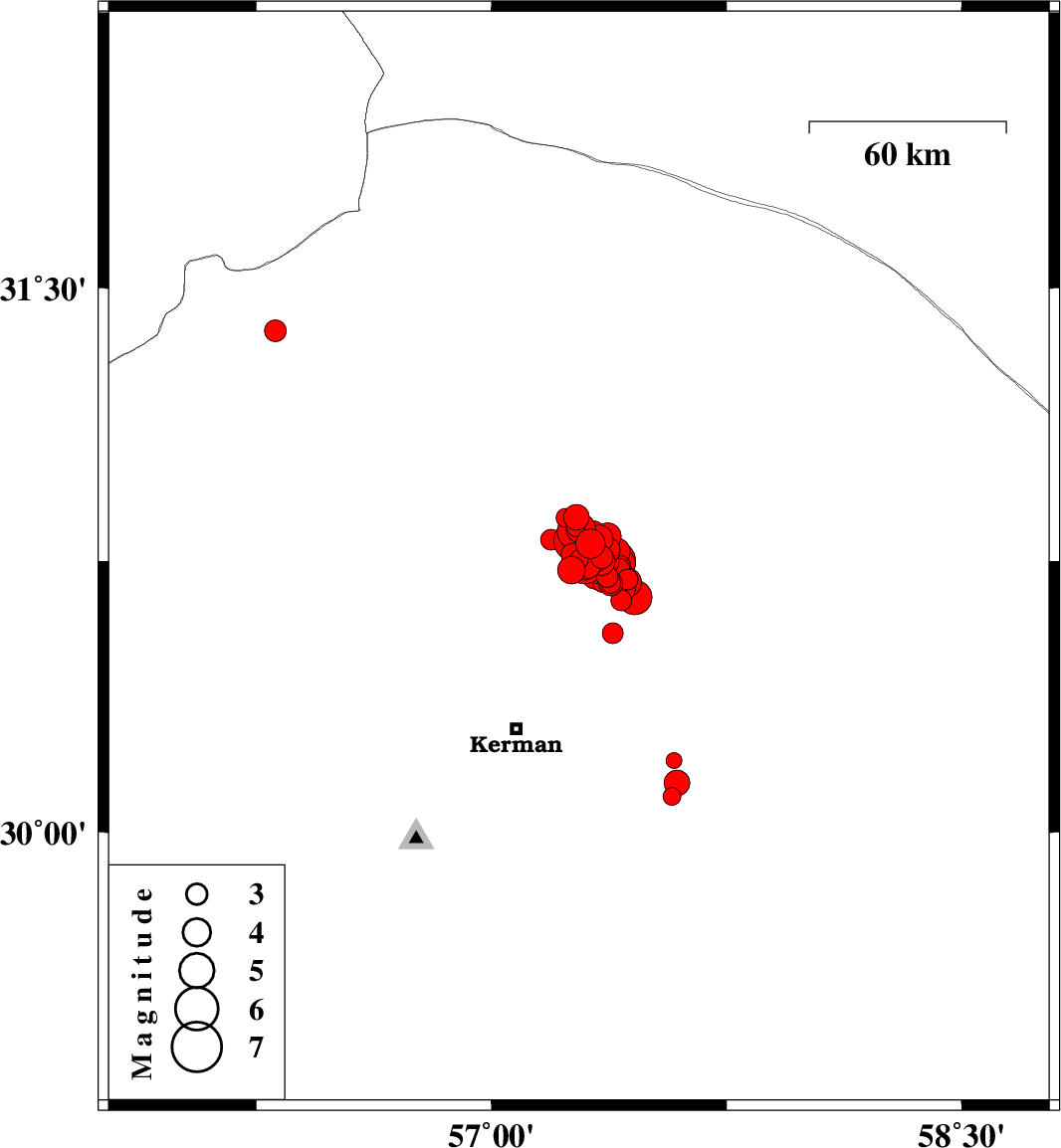 | 2017/12/06 | 01:29:51.4 | 04:59:51.4 | 30.777 | 57.399 | 14 | ML4 | Kerman Province, 62 km North-East of Kerman | ||