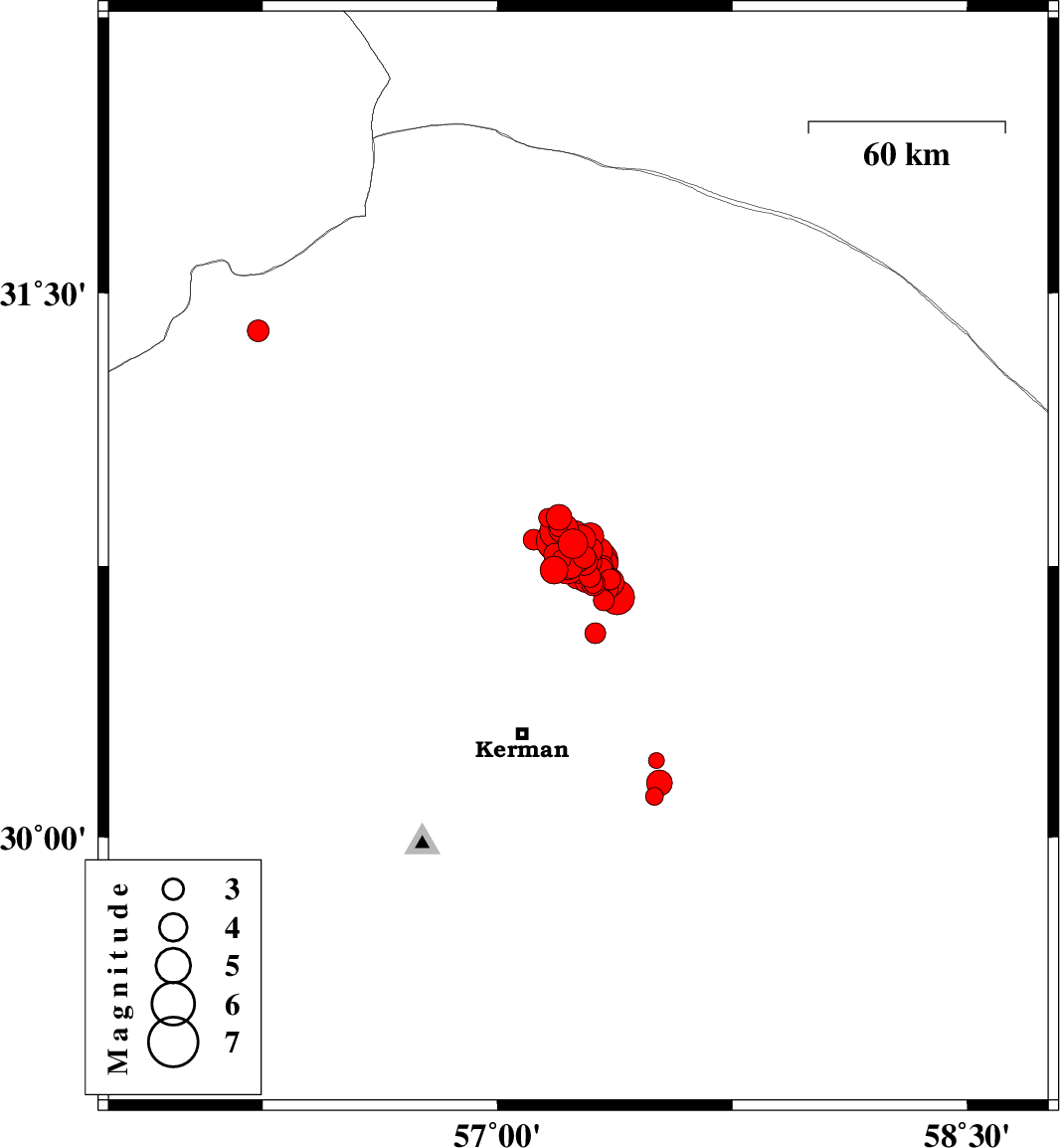 2017/12/12 | 09:17:52.6 | 12:47:52.6 | 30.75 | 57.323 | 14 | ML:3 | Kerman Province, 56 km North-East of Kerman | ||