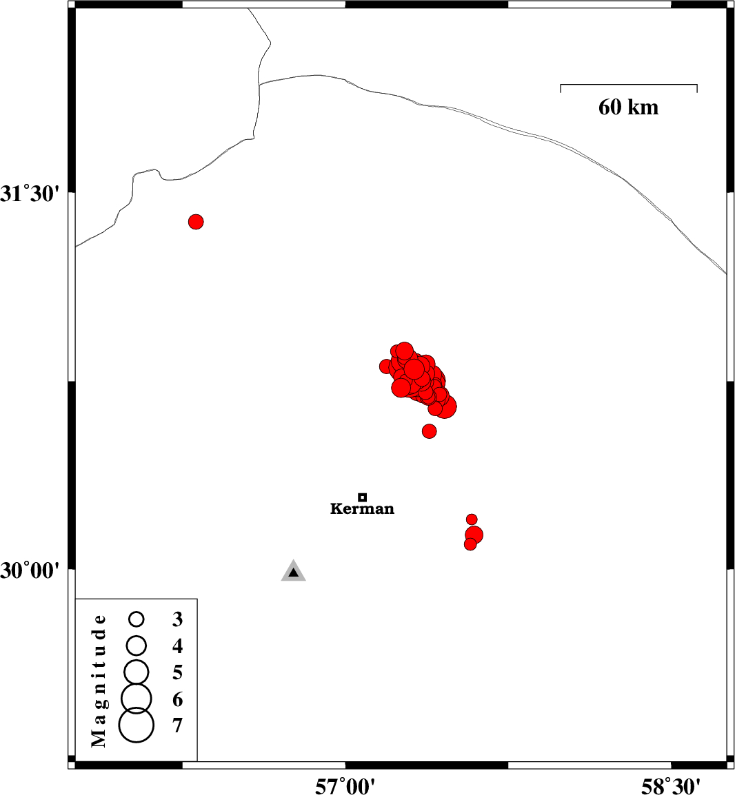 2017/12/02 10:50:40.4 14:20:40.4 30.75157.35615 ML4.1 Kerman Province, 58 km North-East of Kerman