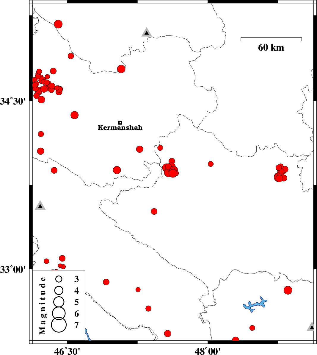 | 2017/12/09 | 06:40:31.3 | 10:10:31.3 | 34.608 | 46.162 | 6 | ML2.8 | Kermanshah Province, 30 km North-East of Sar-e pol-e zahab | ||