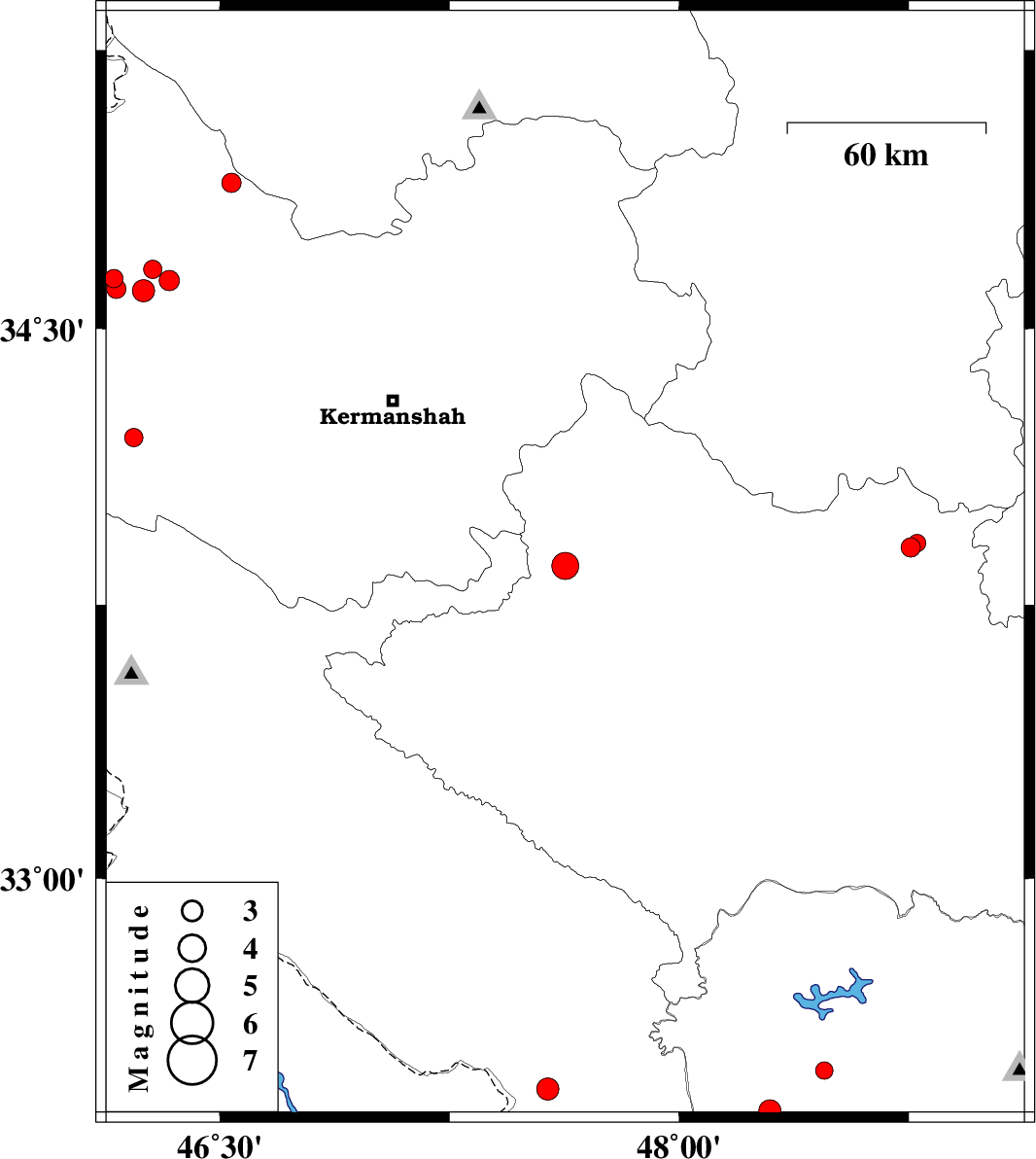 | 2017/12/09 | 06:40:31.3 | 10:10:31.3 | 34.608 | 46.162 | 6 | ML2.8 | Kermanshah Province, 30 km North-East of Sar-e pol-e zahab | ||