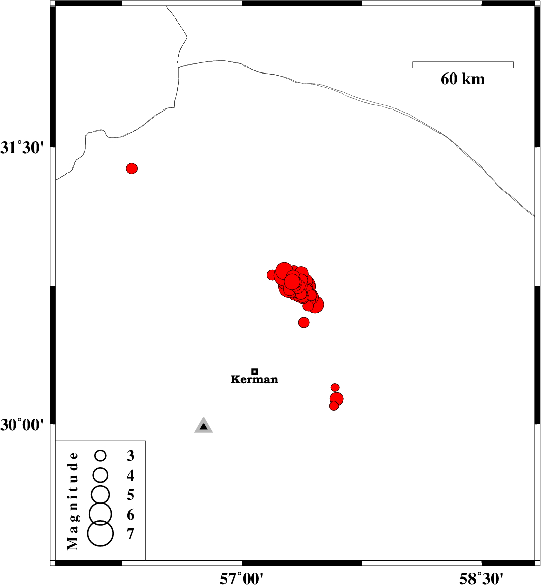 2017/12/01 03:35:00.5 07:05:00.5 30.75257.39916 ML5.5 Kerman Province, 60 km North-East of Kerman