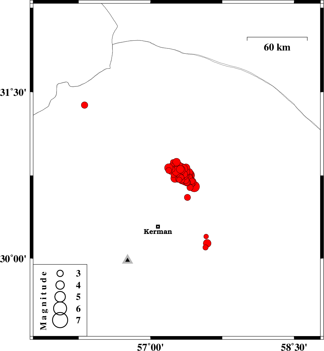 2017/12/02 10:50:40.4 14:20:40.4 30.75157.35615 ML4.1 Kerman Province, 58 km North-East of Kerman