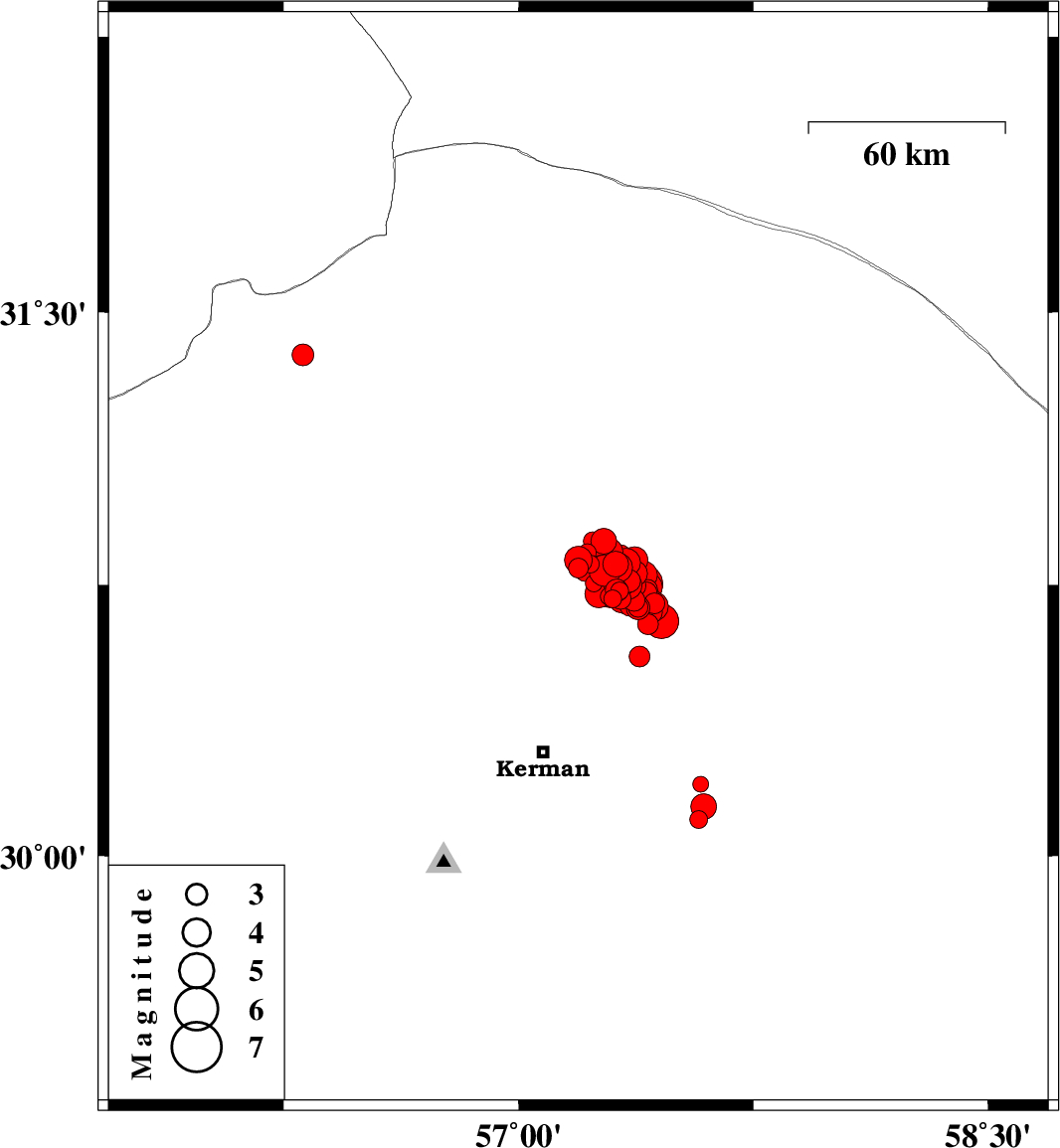 | 2017/12/06 | 01:29:51.4 | 04:59:51.4 | 30.777 | 57.399 | 14 | ML4 | Kerman Province, 62 km North-East of Kerman | ||