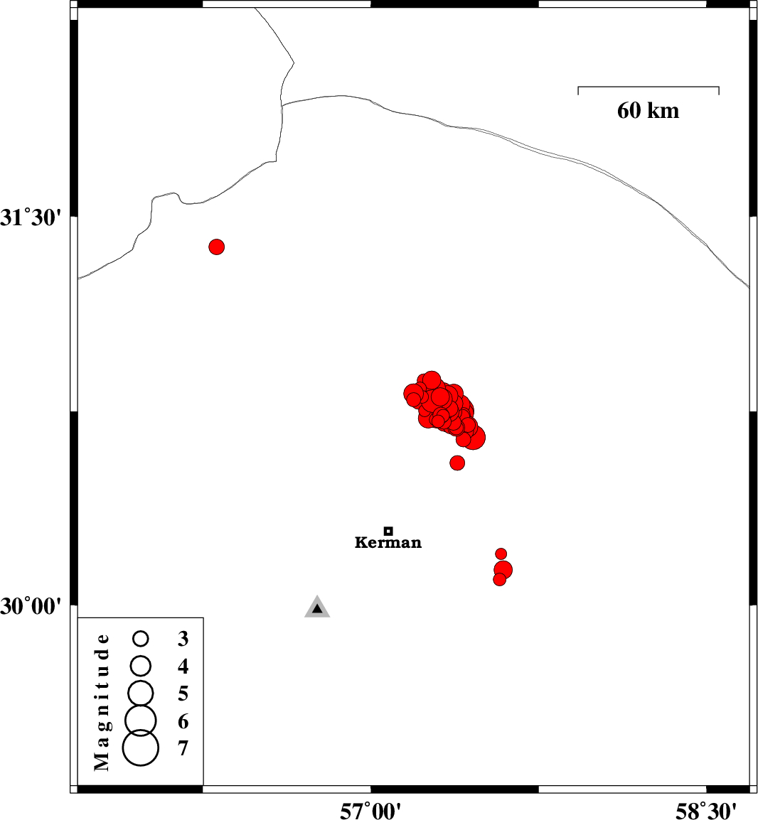 | 2017/12/06 | 01:29:51.4 | 04:59:51.4 | 30.777 | 57.399 | 14 | ML4 | Kerman Province, 62 km North-East of Kerman | ||