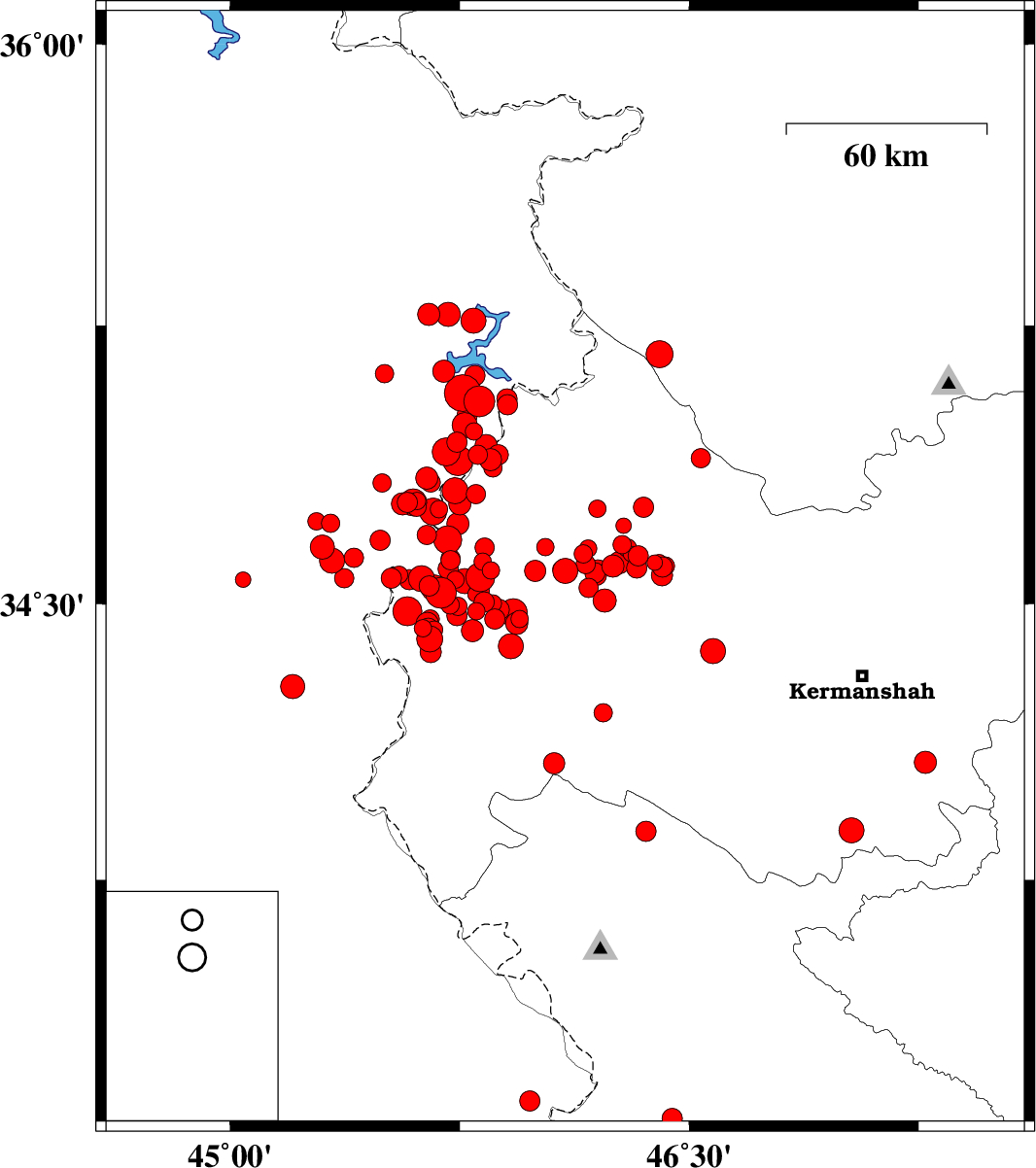 | 2017/11/18 | 02:52:54.1 | 06:22:54.1 | 34.592 | 46.202 | 15 | ML3 | Kermanshah Province, 32 km North-East of Sar-e pol-e zahab | ||